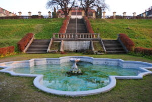 Edificiul are formă de u și este înconjurat de întinse grădini în stil franțuzesc și un parc baroc în care au fost plantate specii variate de arbori și arbuști aduși din întreaga lume. Pentru a-și asigura menținerea plantelor din grădină, baronul a dispus construirea unei oranjerii elegante între anii 1770-1779.
